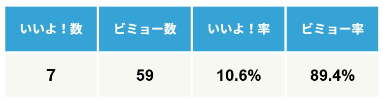 この通り、「ビミョー」率が9割近いのでなんとか改善したいなと思っております。