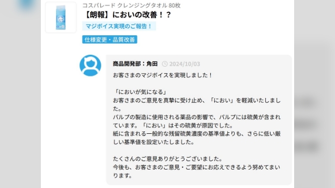 そういうものついては、商品そのものを変えるのではなく、パッケージを変えて「こういう商品ですよ」というのがもう少し伝わるようにするなど、お客様とのコミュニケーション方法を考えた方が良いのではないかと思います。