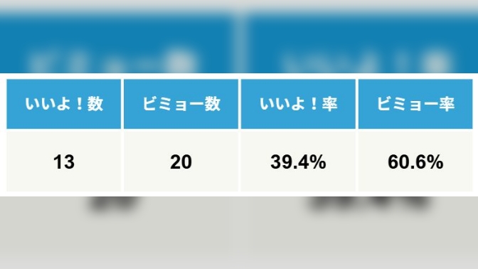 「いいよ!」「ビミョー」のうち、「ビミョー」率のほうが高くなってしまっているので、これを改善するのが本日のテーマです。